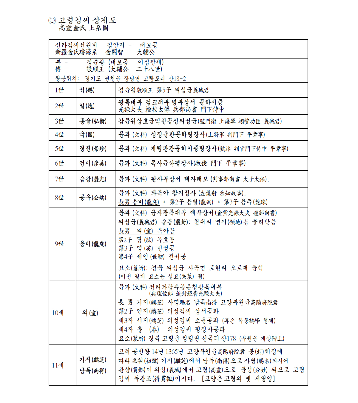 고령김씨 소개